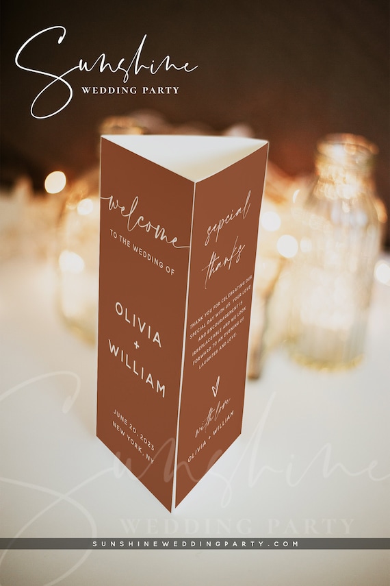 Modèle de programme de mariage à trois volets, itinéraire de programme de mariage en terre cuite, programme de cérémonie de mariage moderne pliable, ordre de service bricolage, T1 - Etsy France