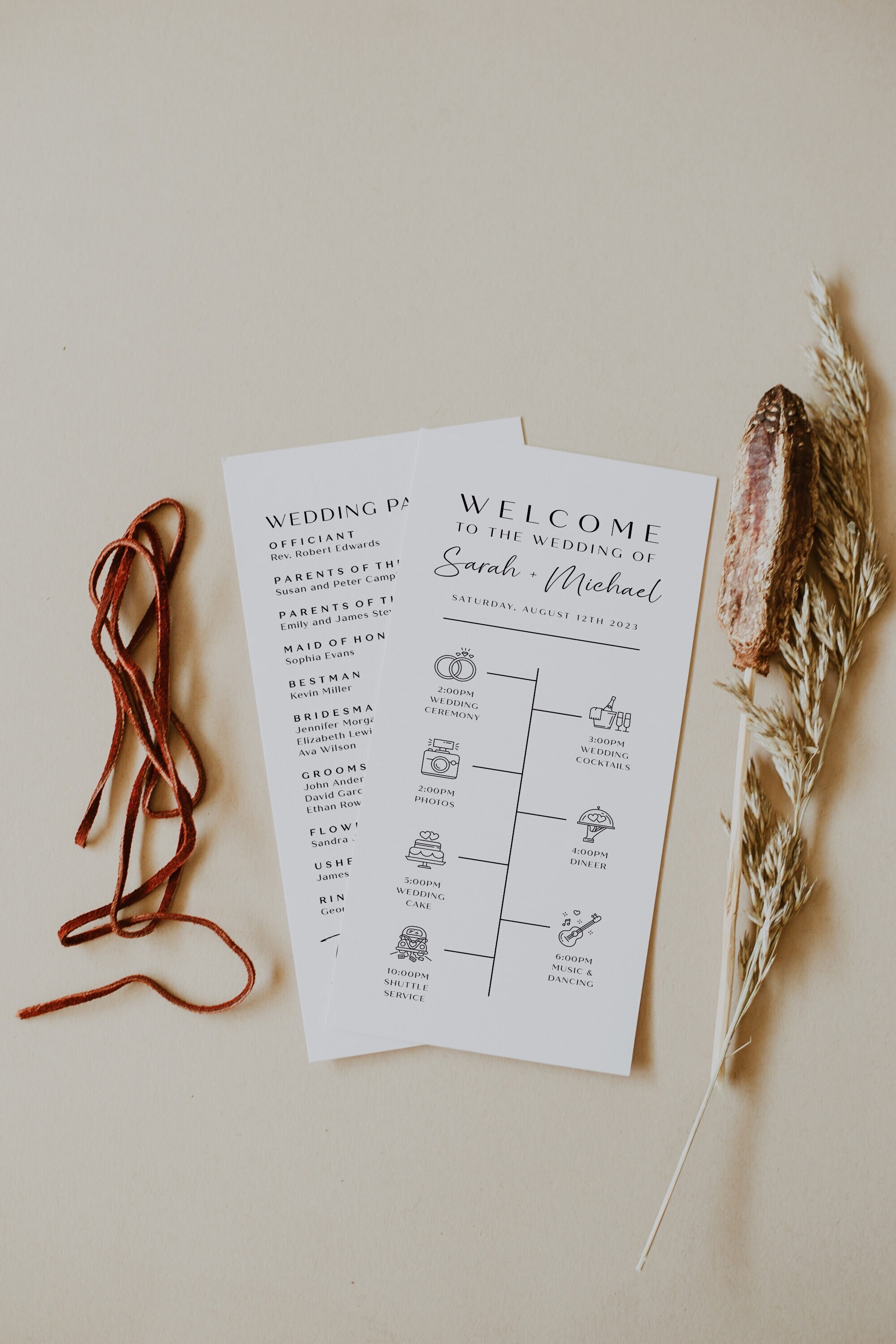 CHIARA Modèle de programme de mariage moderne, programme de mariage infographique modifiable, programme de mariage minimaliste, programme de mariage imprimable, - Etsy France