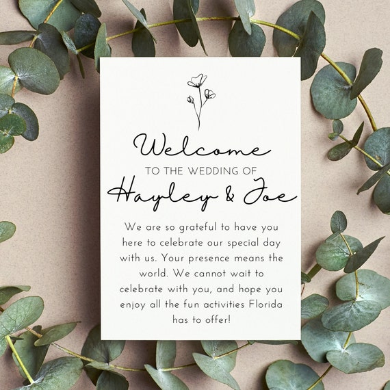 Note de bienvenue de mariage JARDIN Carte ditinéraire de bienvenue de mariage Téléchargement numérique, instantané, modifiable Modèle de programme de mariage 5x7 - Etsy France