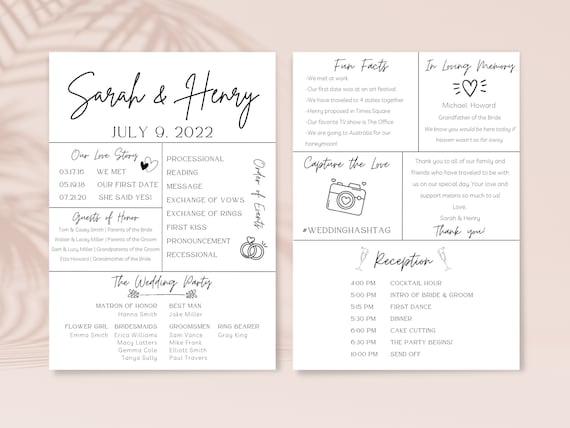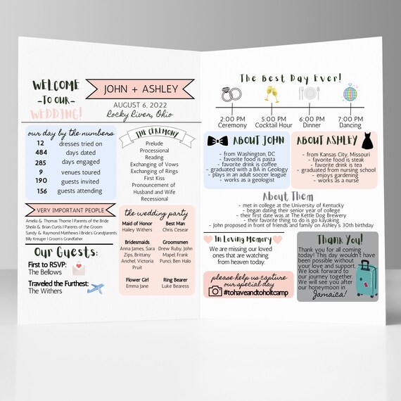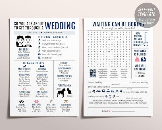 Fully Customizable Infographic Wedding Program Digital Download - Etsy Ireland