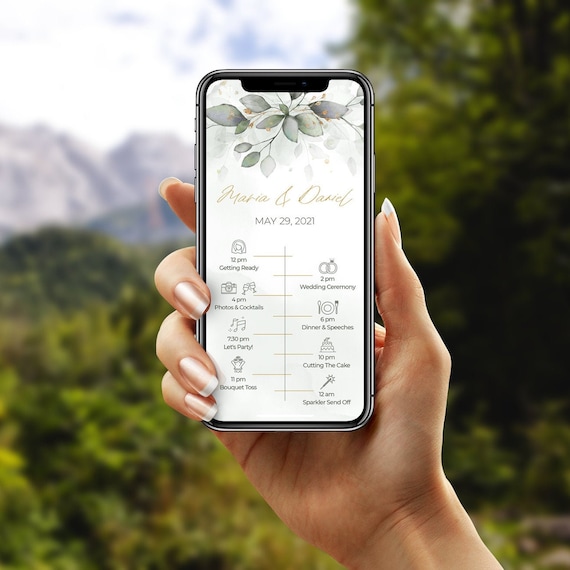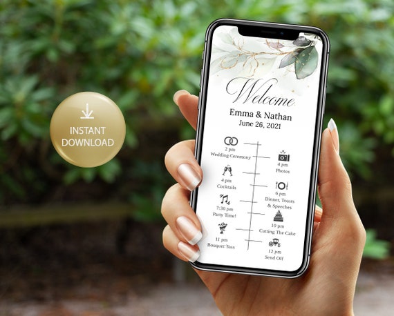 Modèle d'affiche imprimable pour la chronologie du mariage avec icônes, ordre du jour, ordre du jour, programme des événements, infographie, verdure d'eucalyptus c61 - Etsy France