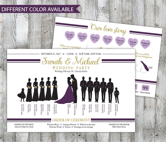 Silhouette Wedding Program Template, Infographic Wedding Program, Wedding Timeline, Blush Ceremony Program, Personalized Bridal Party - Etsy
