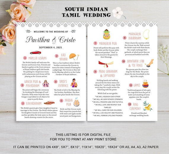 Programme de cérémonie de mariage tamil chettiar de lInde du Sud Guide et programme du rituel de mariage tamil Iyengar Infographie hindoue Fichier numérique - Etsy France