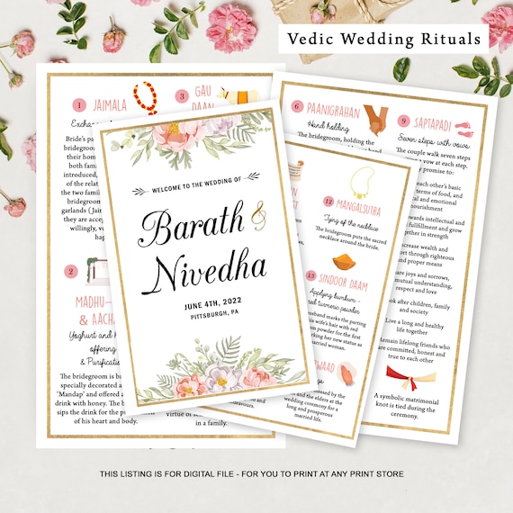 Cartes de programme de mariage hindou personnalisées Guide de mariage indien Panneau infographique de cérémonie Vivaha Fichier numérique - Etsy France