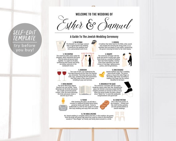 Modèle de signe de mariage juif modifiable, infographie du programme de cérémonie juive, guide de mariage juif, signe de bienvenue, traditions juives - Etsy Canada