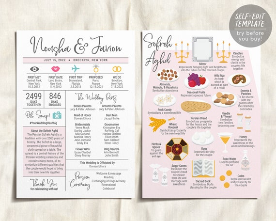 Modèle de programme de cérémonie persane modifiable, programme de mariage persan, Sofreh Aghd, cérémonie de mariage persan, faire-part de mariage persan - Etsy France