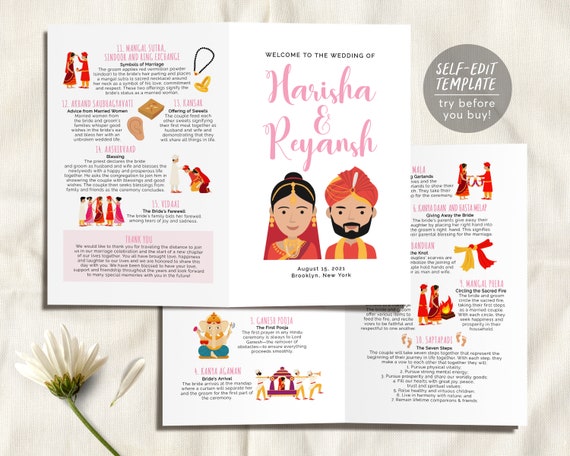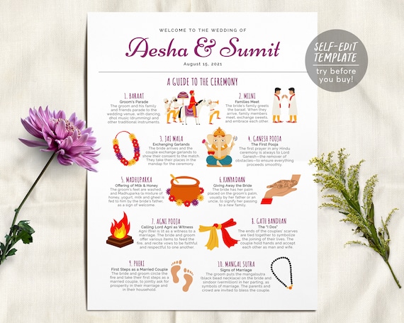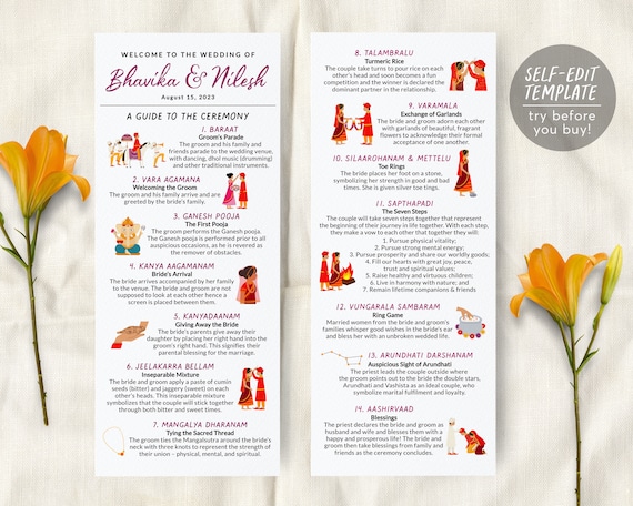 Editable Hindu Ceremony Program, Indian Wedding Program Portrait, Indian Wedding Ceremony, Hindu Wedding Ceremony Program, Hindu Infographic - Etsy Finland