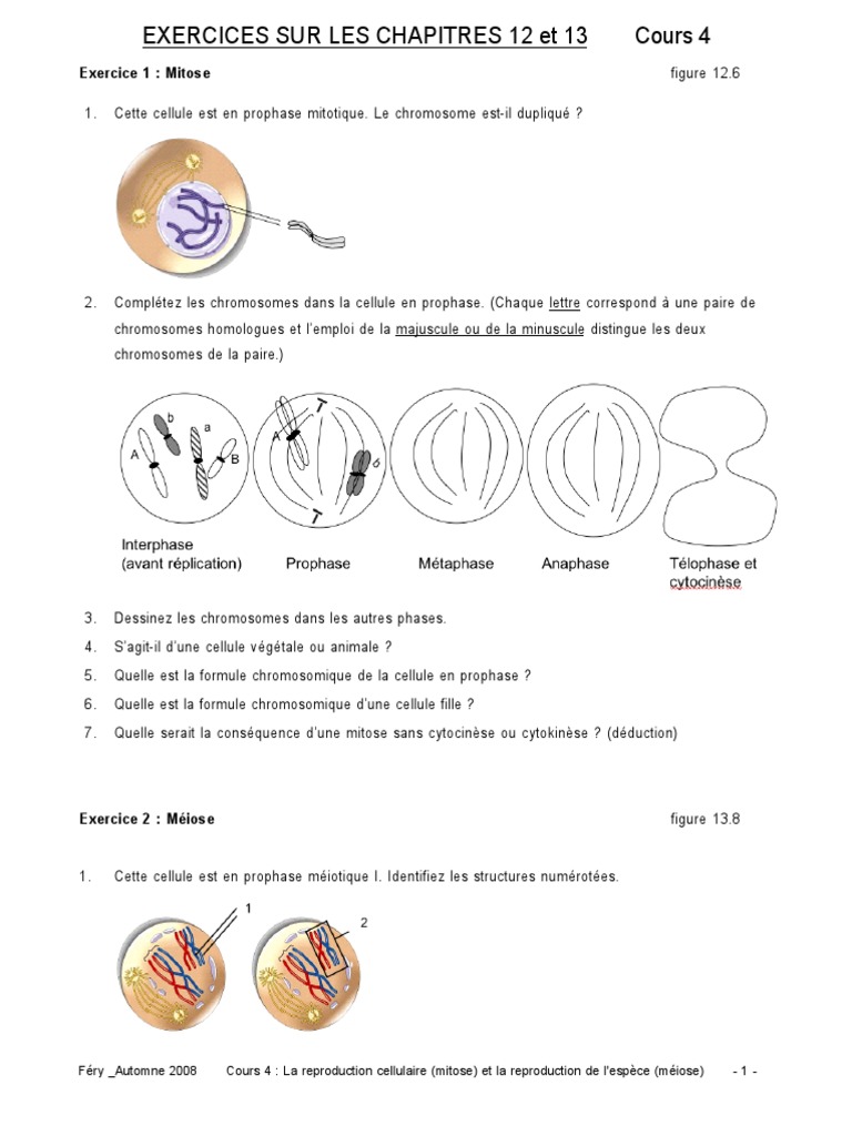 Exercice [SVT /1ère A et B - La mitose chez la cellule animale]