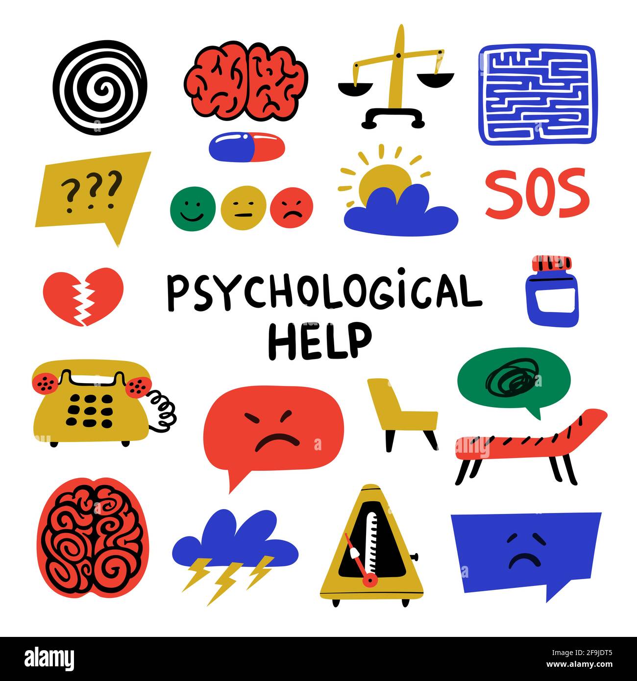 Psychology. Psychological help. Set of hand-drawn icons on the theme of psychology. Psychology, brain, and mental health vector icons or logos set Stock Vector Image & Art - Alamy