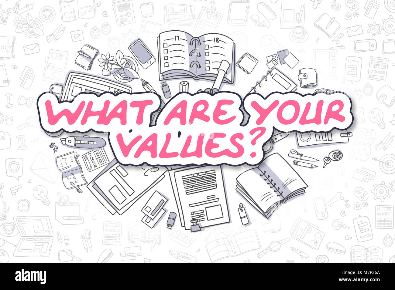 Quelles sont vos valeurs anciennes avec Doodle icônes de design Photo Stock - Alamy
