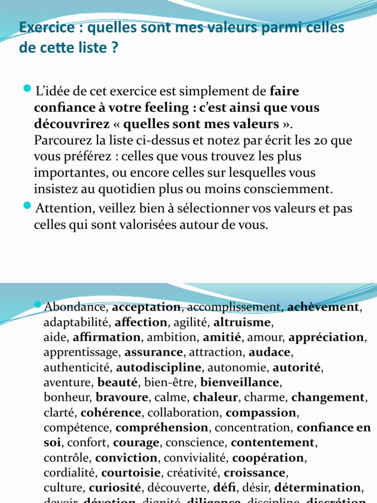 Exercice Quelles Sont Mes Valeurs | PDF