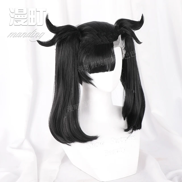 Perruque de Cosplay Courte Épée et Bouclier de Marnie, Double Queue de Cheval, Noir et Gris, Bonnet de Haute Qualité - AliExpress