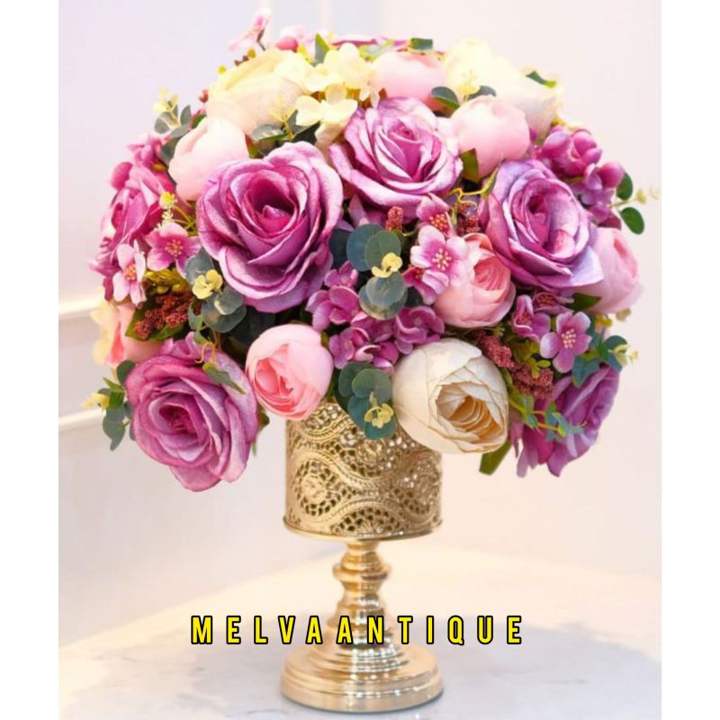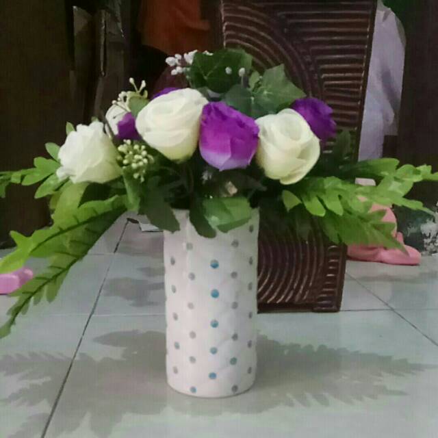 Jual Rangkaian Bunga Mawar Palsu Vas Bola Mvb107 Nila-putih Di ...