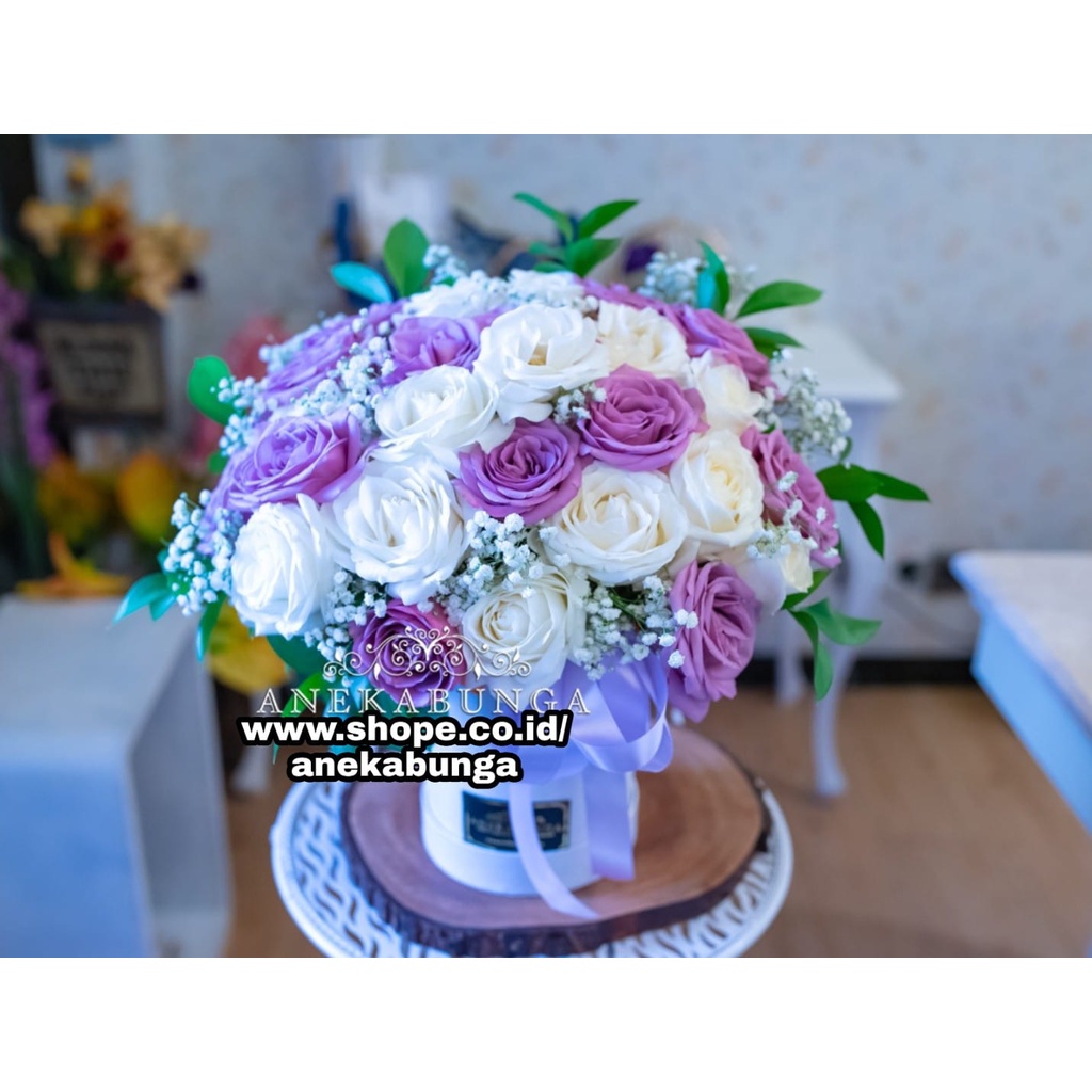 Flower Box White Purple Rose Bunga Kotak Mawar Putih Ungu Kado Wedding Birthday Anniversary pot Kado Mothers Day Rangkaian Hari Ibu Valentine Day ...