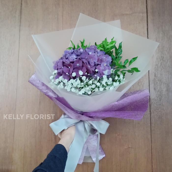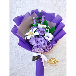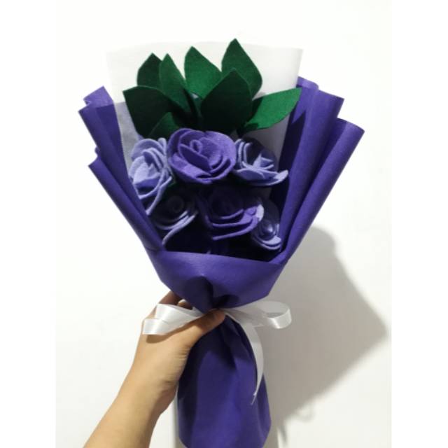 Jual Hand Buket Bunga Flanel Ungu mawar lili lavender hydrangea ...