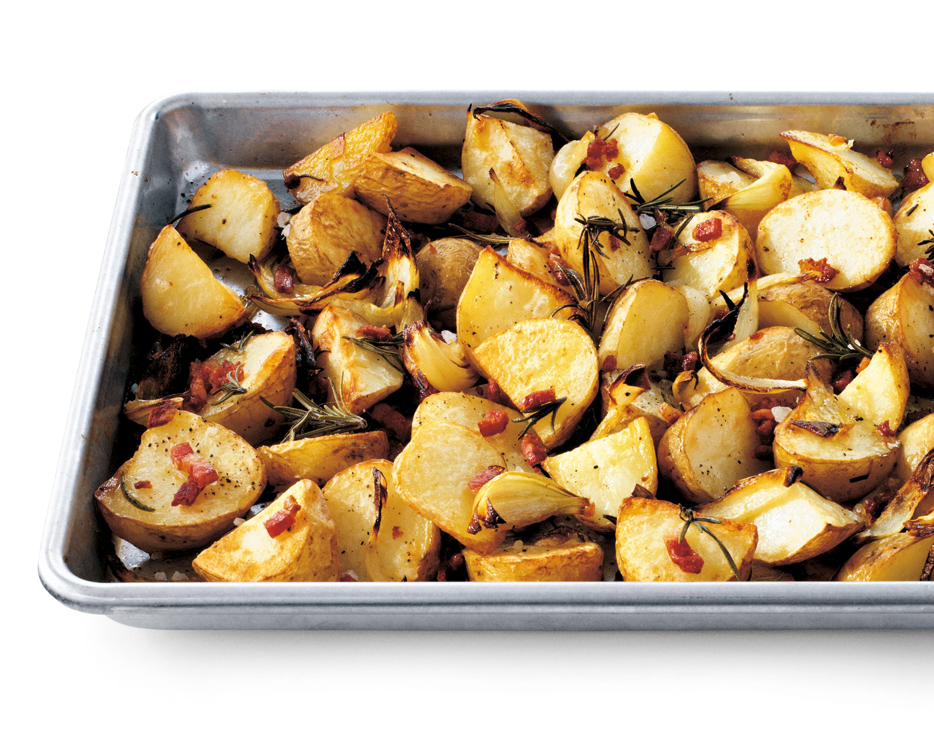 Pommes de terre rôties aux oignons, au romarin et à la pancetta | Zeste