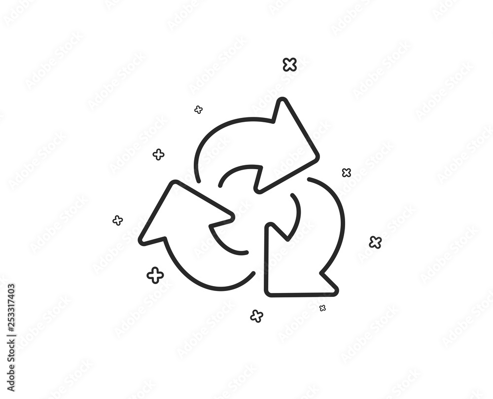 Vecteur Stock Recycle arrow line icon. Recycling waste symbol. Reduce and Reuse sign. Geometric shapes. Random cross elements. Linear Recycle icon design. Vector | Adobe Stock