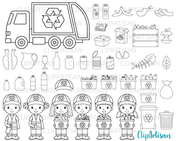 Clipart de recyclage, Clipart à ordures, camion à ordures, camion de recyclage, bac de recyclage, timbre numérique, petite utilisation commerciale, svg et png - Etsy Canada