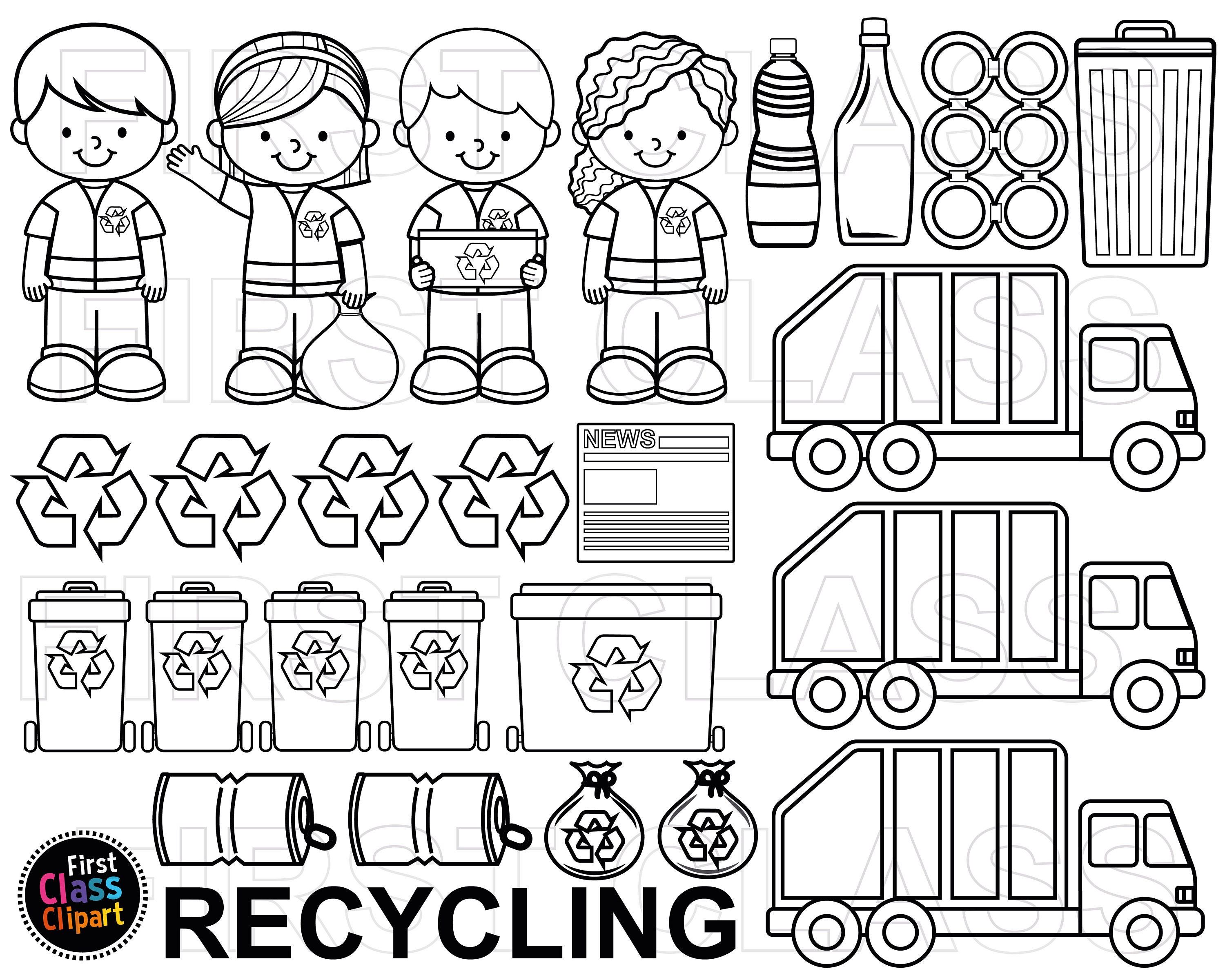 Clip art black and white | Black and White Boy Recycling Plastic Bottles Clip Art Image - black ... | Recycling, Animal coloring pages, Clip art