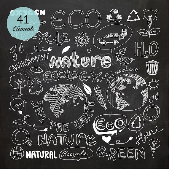 Dessin craie Eco recyclage Doodle recyclage icônes Clipart scrapbooking tableau Clip Art Nature Collection écologie terre journée de lenvironnement - Etsy France