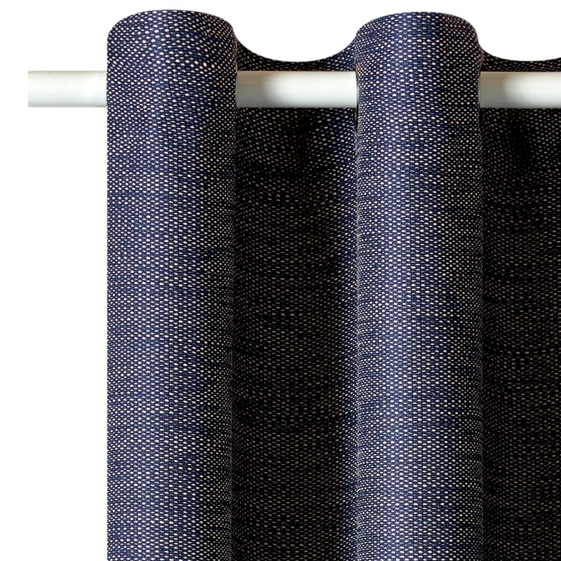 Rideau 135 x 240 cm à Œillets Imprimé Chambray Aspect Chiné Bleu Marine