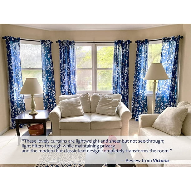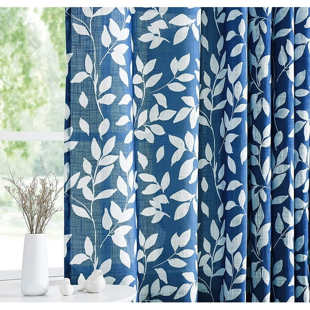 IBAOLEA Rideaux Bleu Marine et Blanc pour Chambre à Coucher 54" Longueur Rideaux Imprimé Feuilles pour Fenêtres Semi-Voilages, Rideaux à Oeillets Bleu Royal, Paquet de 2 Bleu Marine 52" x 54" -