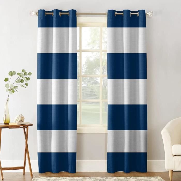 Rideaux à rayures bleu marine et blanc, 50W x 84L rideaux doublés, rideau grommet, rayures horizontales de 3 rayures, tissu de coton - Etsy Canada