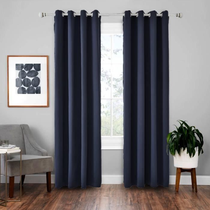 Doubles Rideaux Occultants Isolant Thermique Bleu marine 140x240cm Rideaux Salon à Œillets Pour Chambre Effet Soie De Luxe - Cdiscount Maison