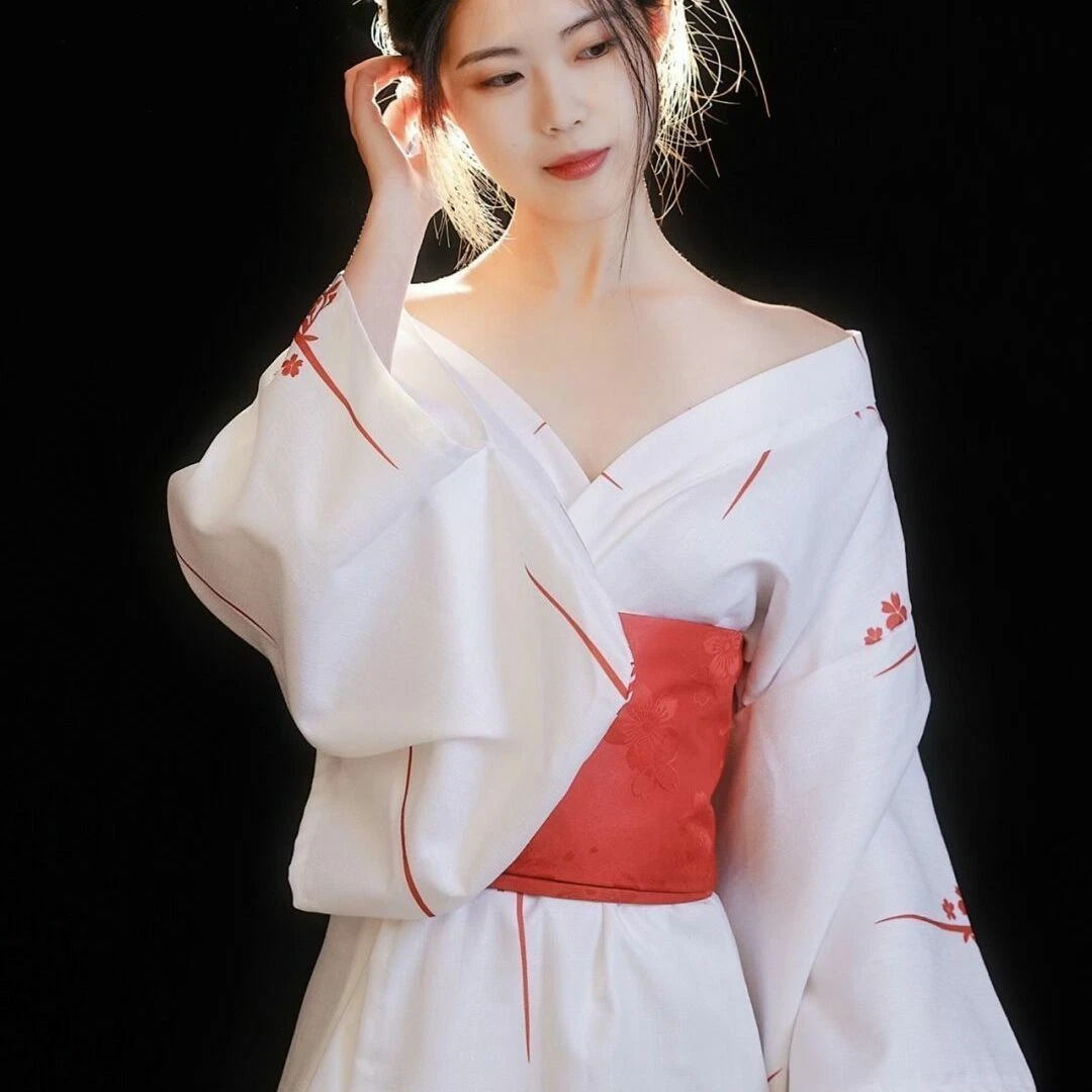 Sdfpj Femmes japonaises Robe Yukata Originale Kimono Traditionnelle avec Costumes de Danse de Performance obi (Color : White Floral, Size : One Size) : Amazon.fr: Mode