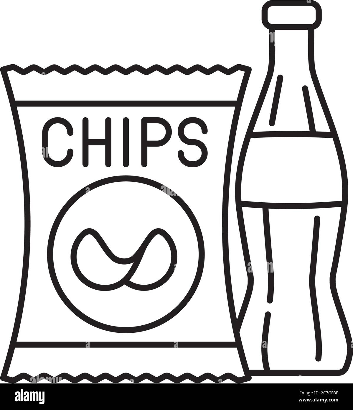 Icône de la ligne vectorielle du sac de chips et du flacon de ...