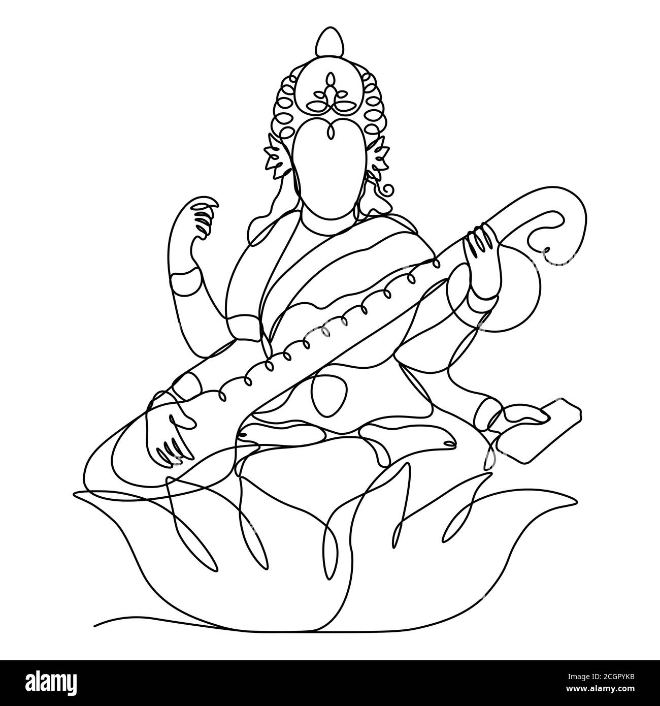 Hindu Goddess Saraswati Vector Hand Drawn Stock Illustration - Download Image Now - Saraswati, Goddess, Vector - iStock