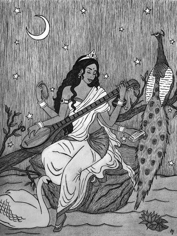 Saraswati Goddess of Knowledge & the Arts 5x7 Hindu Vedic Mythology Wisdom Education Music Witchy Artwork Pagan Pen Ink Fine Art Print - Etsy Canada