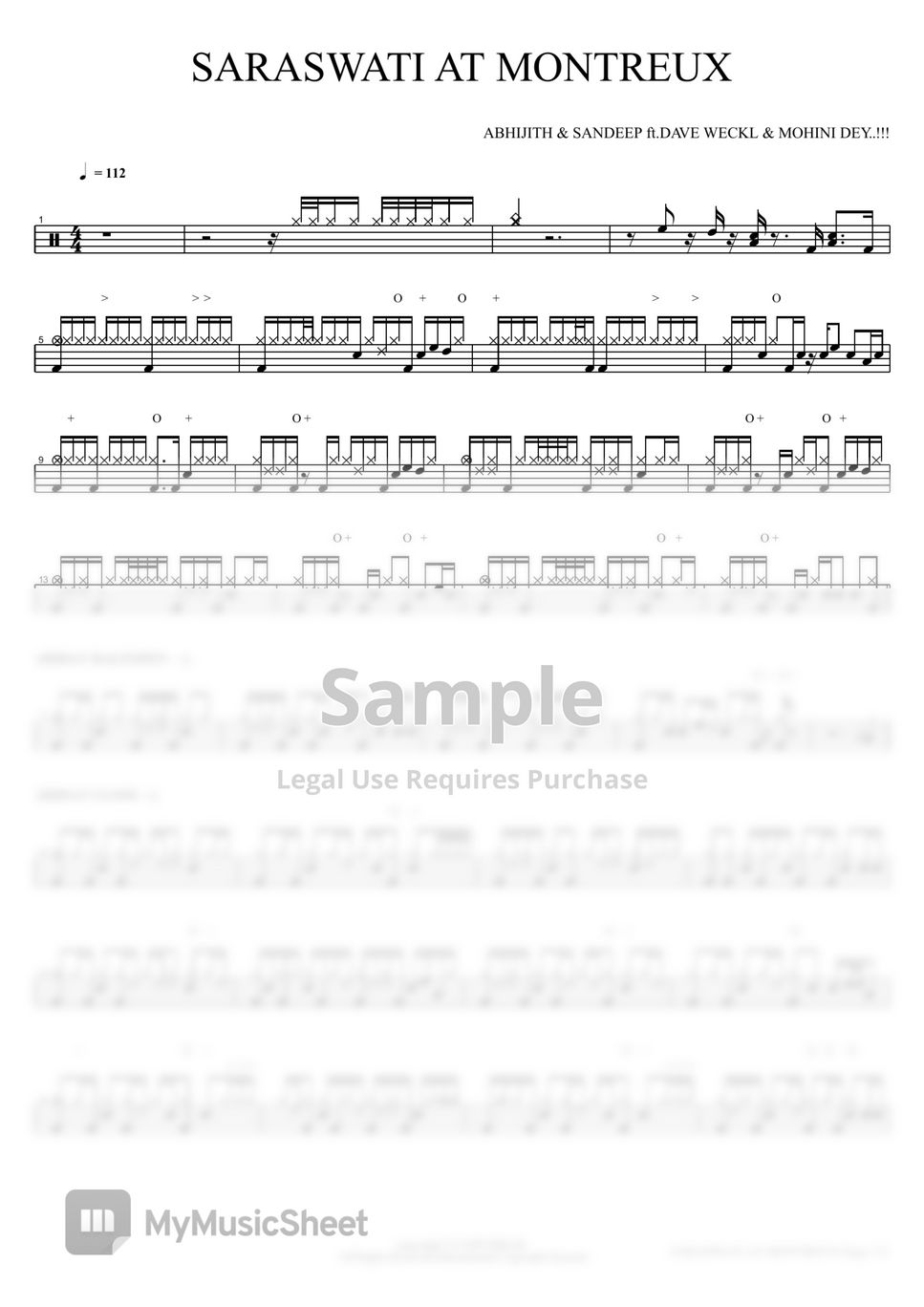 SARASWATI AT MONTREUX - ABHIJITH & SANDEEP ft.DAVE WECKL & MOHINI DEY..!!! Partition musicale by COPYDRUM