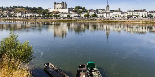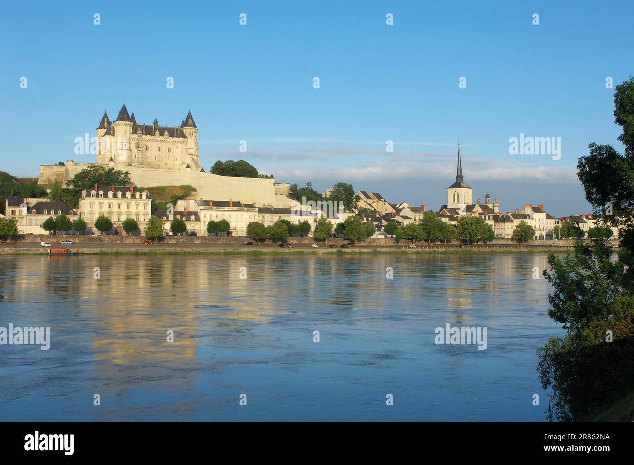 Saumur (north-western France): the River Loire. In the background, the castle and the Church of Notre-Dame-de-Nantilly . The Chateau de Saumur belongs Stock Photo - Alamy