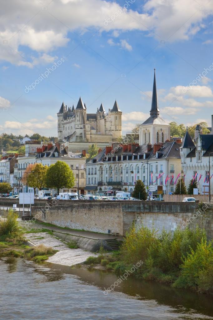 Fly Over Picturesque Town of Saumur and Medieval Castle Saumur. France Stock Photo - Image of august, outdoors: 196207022