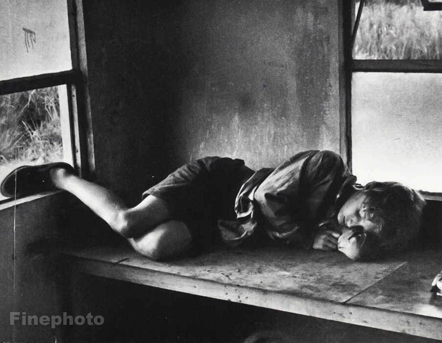 1963 Vintage Young Boy Napping Lord Of The Flies Island Movie Set Film Photo Art