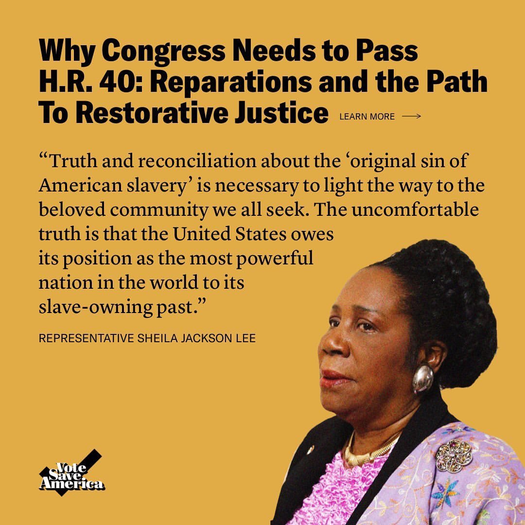 ACLU - Rep. Sheila Jackson Lee showed leadership by re-introducing H.R. 40, a bill to establish a commission to study reparations proposals for African Americans. #BlackHistoryMonth | Facebook