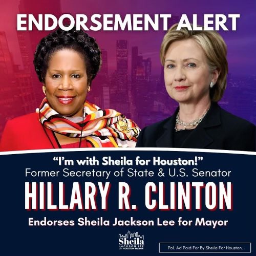 Lina Hidalgo on X: "I'm incredibly proud to endorse Sheila Jackson Lee for Mayor of Houston. @SJacksonLee is a proven fighter, and I know she will continue to deliver as Mayor. We've
