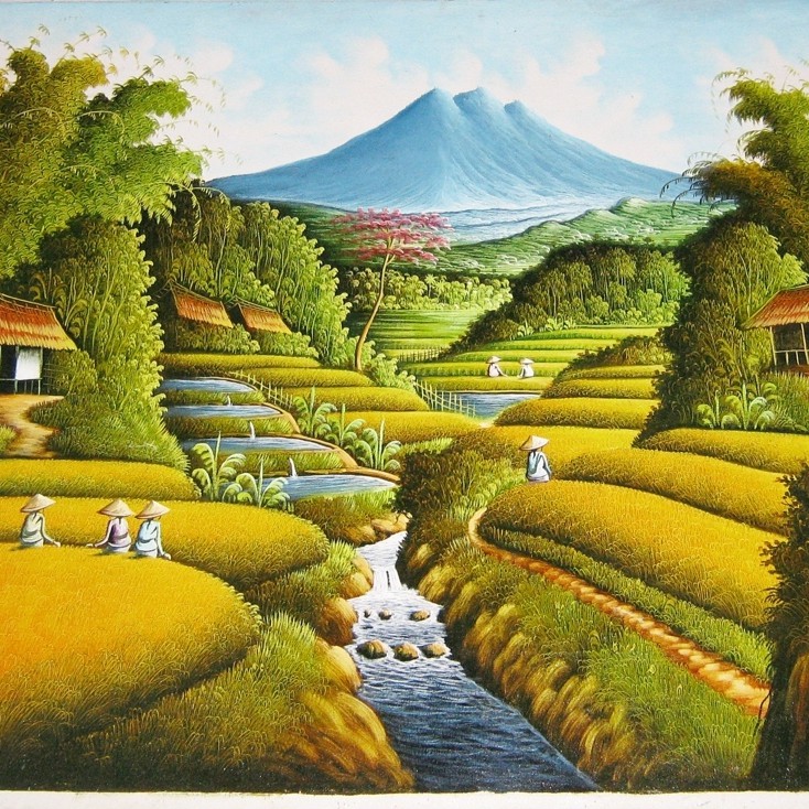 Gambar lukisan pemandangan sawah padi | Galeri, Kanvaslar