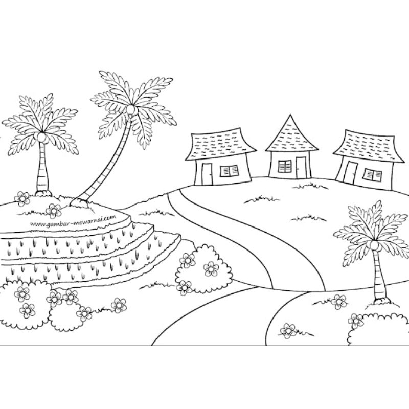 Mewarnai Gambar Pemandangan Khas Indonesia | Alamendah's Blog
