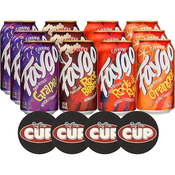 Amazon.com: Faygo 4 Flavor Soda Pop Variety: Grape, Old Fashioned Root Beer, Rock & Rye, Orange, (Pack of 12) with By The Cup Coasters : Grocery & Gourmet Food
