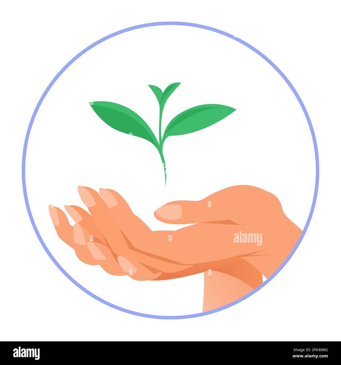 La main femelle maintient soigneusement le germe vert de la plante. Illustration circulaire vectorielle sur fond blanc Image Vectorielle Stock - Alamy