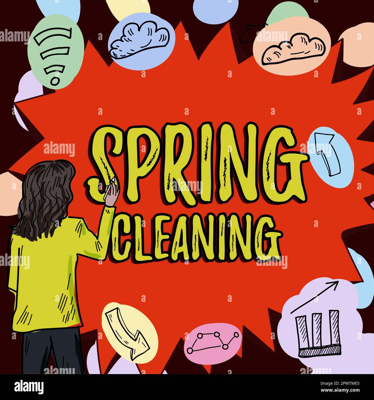 Affiche montrant le nettoyage de printemps, mot écrit sur la pratique de nettoyer soigneusement la maison au printemps Photo Stock - Alamy