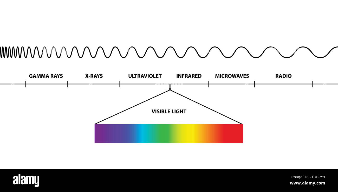 Illustration Scientifique Vectorielle Du Spectre Électromagnétique Radio Microondes Infrarouge Visible Ultraviolet Rayons X Ondes Gamma Isolées Sur Blanc Fréquence Et Longueur Donde Vecteurs libres de droits et plus d'images vectorielles de ...