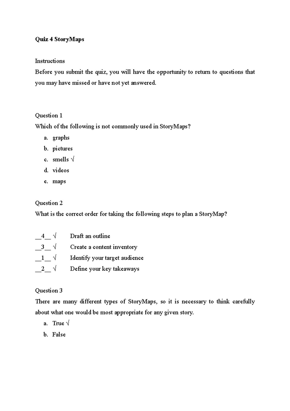 Quiz 4 Story Maps - Every week, there is a test, and there are ...