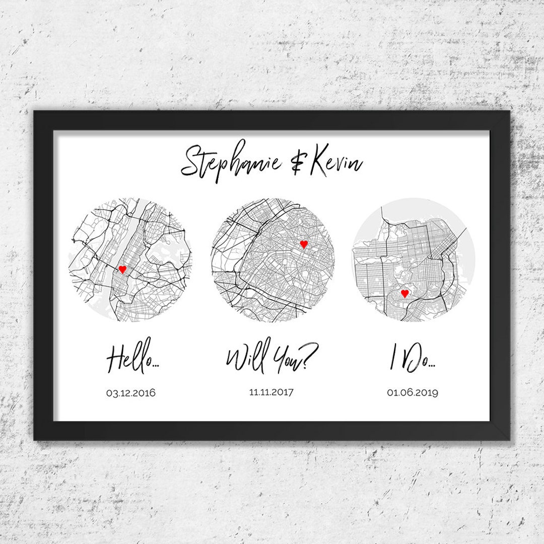Hello, Will You, I Do, Map Art Print, Anniversary Wedding Gift ...