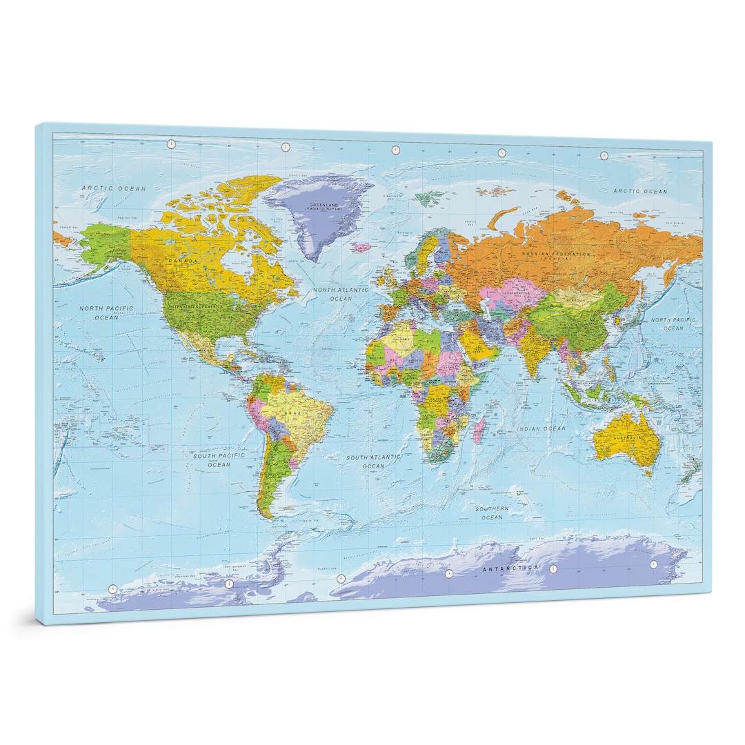 Political Push Pin World Map Detailed Traditional Map Wall Art ...