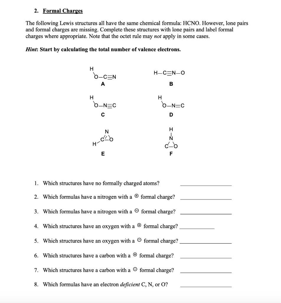 Solved 2. Formal Charges The following Lewis structures all | Chegg.com