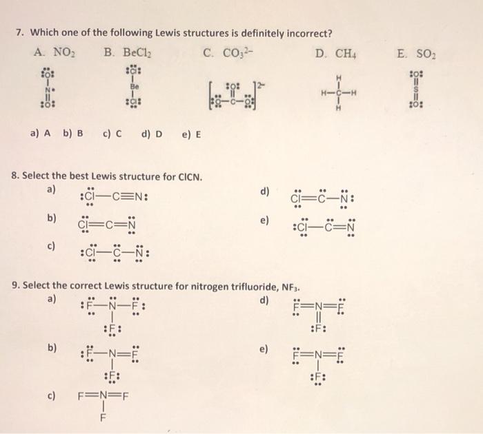 Solved 7. Which one of the following Lewis structures is | Chegg.com