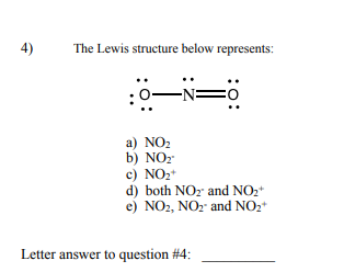 Solved 4) The Lewis structure below represents: :0–N= a) NO2 | Chegg.com